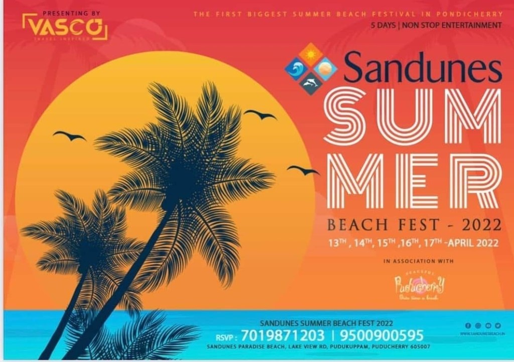 Sandunes Beach Fest in Pondicherry. Sandunes Beach Fest in Pondicherry is from 13th - 17th Apr 2022. You may already …